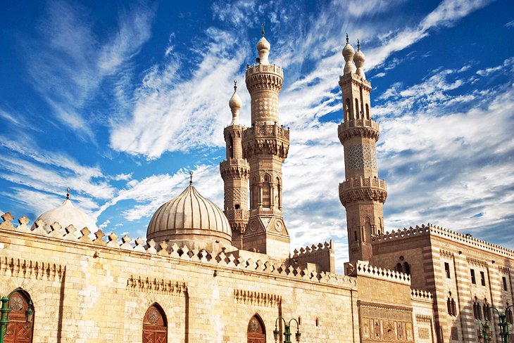 Al-Azhar Mosque is the finest building of Cairo’s Fatimid era and one of the city’s earliest surviving mosques, completed in AD 972. It’s also one of the world’s oldest universities — Caliph El-Aziz bestowed it with the status of university in AD 988 (the other university vying for “oldest” status is in Fes) and today, Al-Azhar University is still the leading theological center of the Islamic world.