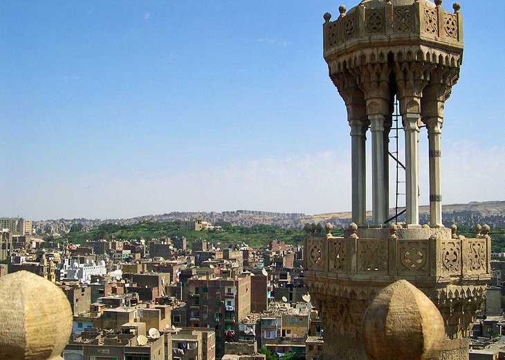 Of all the Islamic Cairo district’s gates, Bab Zuweila is the most interesting. You can climb to the top of this medieval era relic (built in the 11th century) for some amazing rooftop views over Islamic Cairo. The gate itself has two minarets and is the last southern gate of the old town still standing. Right next door is the red-and-white stonework of the Sheikh al-Mu’ayyad Mosque, and a few steps farther away are the fascinating artisan stalls of the Street of the Tentmakers, where Egypt’s bright fabric used for weddings and other special occasions is sold in bulk.