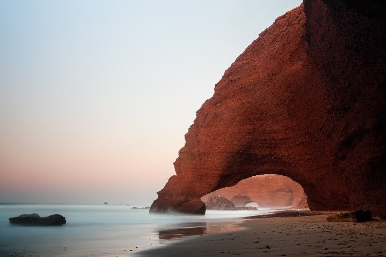 The beach still remains a remarkable place to take in the strange rock formations, and is famous for sunsets that span the sky and highlight the array of reds in the rocks. Legzira, with its windy weather, is an extremely popular spot for paragliders and surfers, as well as sunset chasers.