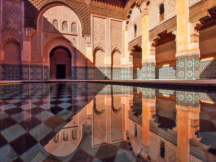 Built in 1565 by the Saadians, the Medersa (madrassa – Islamic school of learning) of Ben Youssef is the largest theological college in Morocco. The warrens of rooms (with student cells that once were home to 900 pupils) are clustered around small internal courtyards in typical Islamic architecture style, but the main internal courtyard is the real highlight here. The fine zellige tiling, stalactite ceilings, cedar-wood detailing, and Kufic inscriptions used as decoration across the courtyard’s interior make this medersa one of Morocco’s most beautiful buildings and a star medina attraction