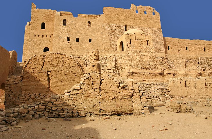 Standing on the monastery’s fortified walls, overlooking the undulating dunes, gives some sense of the isolation the monks who lived here must have faced. Today, you can hire a boat or felucca to take you to the monastery boat landing and then either hike or take a camel ride (30 minutes) into the sand to get here.