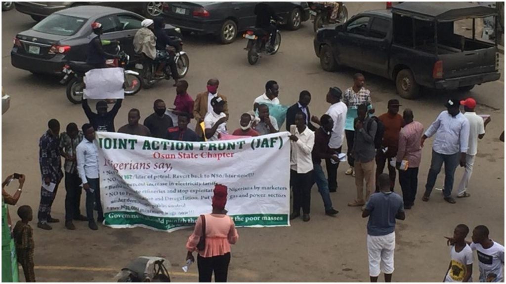 Speaking, the convener of JAF, Comrade Alfred Adegoke called on Nigerians to resist the increases in fuel price, electricity tariff and VAT, adding that if the President cannot reverse the price from the N160 to the N86.50 that the price was from 2012 to May 10, 2016, then he should voluntarily resign his position as the president.