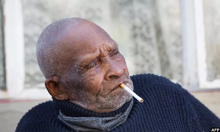 Blom was born in 1904 in the rural town of Adelaide and despite his great age still enjoys a cigarette. (RODGER BOSCH AFP)