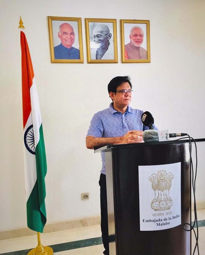 The embassy celebrated on 20 June 2020, the sixth International Day of Yoga in the its premises in Malabo among its own staff in accordance with the motto of this year, ‘ Yoga from Home’. In his speech to the press, Ambassador Bhanot congratulated all yoga lovers in Equatorial Guinea, and conveyed gratitude on behalf of Hon’ble Prime Minister Narendra Modi to His Excellency President Obiang Nguema Mbasogo for his invaluable support in celebration of the Yoga day in his country.