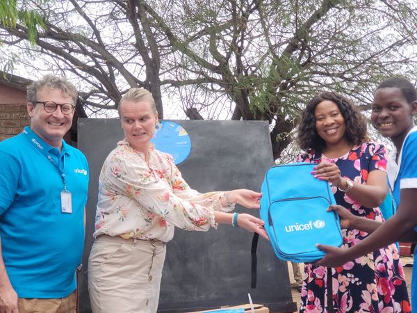 UNICEF through the Royal Norwegian Embassy has donated 45,000 school bags consisting of 5 notebooks, 2 pens, 2 pencils and a ruler.
