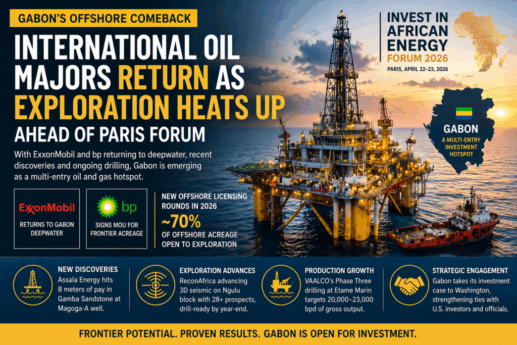 Gabon is re-emerging as a major destination for global oil and gas investment, as renewed exploration activity and the return of international energy companies signal a strong offshore revival ahead of the Invest in African Energy Forum 2026. The country’s growing momentum will be a central focus at the forum, scheduled for April 22–23 in Paris, where the Minister of Petroleum and Gas is expected to outline the government’s strategy to attract investment and accelerate upstream development.